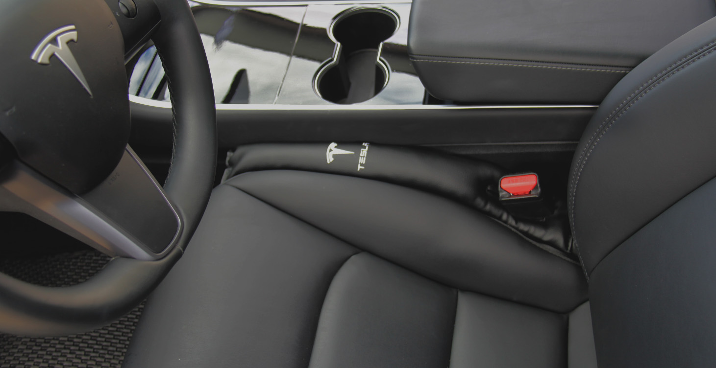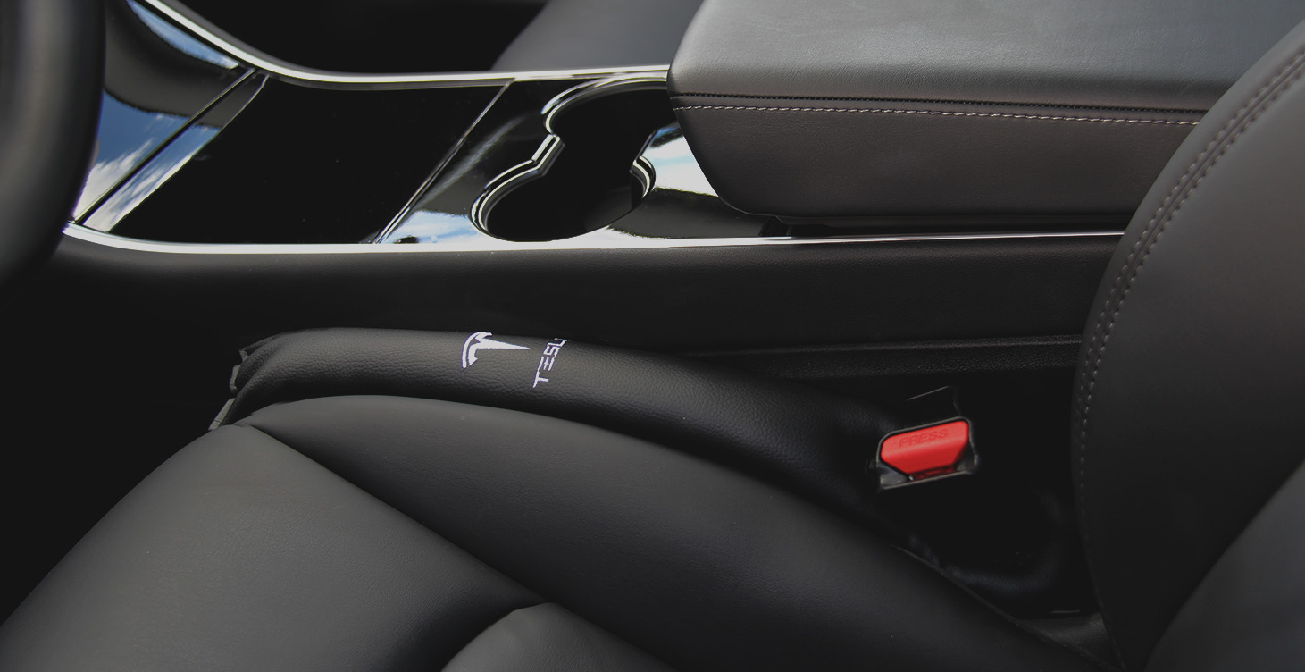 Lychee grain black leather stitched with quality workmanship to blend in with Model 3’s interior.