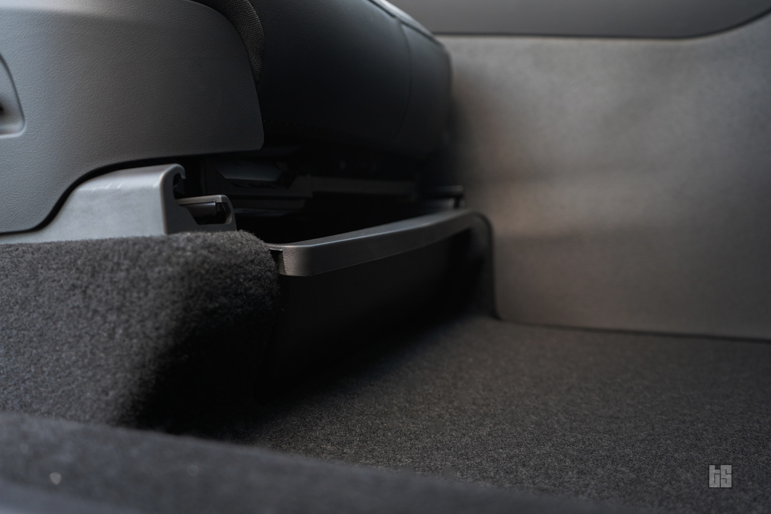 This underseat drawer keeps your essentials out of view and out of mind—perfect for stashing valuables in a clean, clutter-free way. Seamlessly integrated for discreet, secure storage right where you need it.